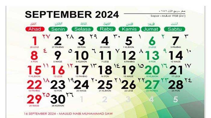 Senin, 16 September 2024: Libur nasional Maulid Nabi SAW